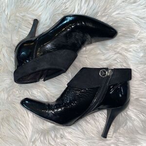 Donald J Pliner Rula Black Patent and Suede Donald Pliner Ankle Boot