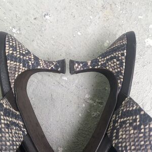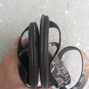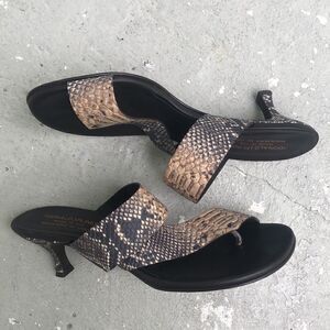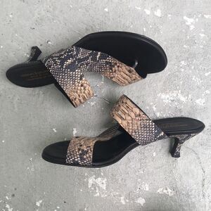 Snake skin, kitten, heel sandals. Super cute and almost new. Check out the pictures heel height is 2 inches.