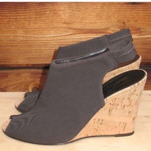 Donald J Pliner Peep Toe Olive Cork Wedge Shoes