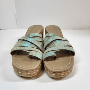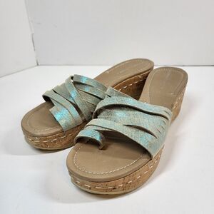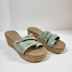Size 9.5 Donald J. Pliner metallic colored sandals. Cork wedge 2.5" heels. So nice ! Excellent condition.