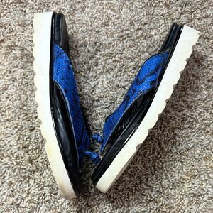 Donald Pliner Cobalt Blue & Black Camo Leather Flip Flop Sandals, Size 7.5 (N)