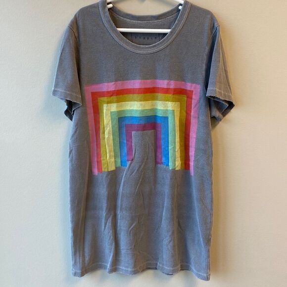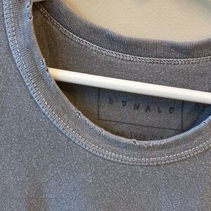 Donald grey short sleeve T-shirt small grey a with rainbow Distressed around collar Slight pilling