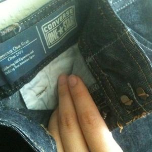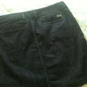 Beautiful dark denim skirt---too big for me, but it's sooo nice! Looks like a hugging pencil skirt~ pockets that work... I wish it were my size ; ^;