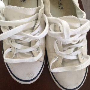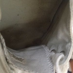 Ralph Lauren white sneakers in a size 6! They have been used. They were just washed and ready to be shipped out. There are scuffs on the rubber, Mr Magic eraser could help
