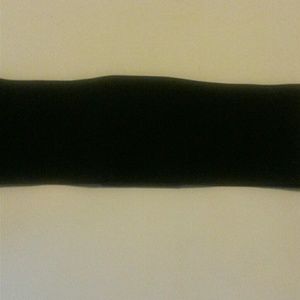 The corset portion is leather, belt is made of high quality elastic that will not roll, and closes with secure snaps that are not visible. The brand is Newport News.