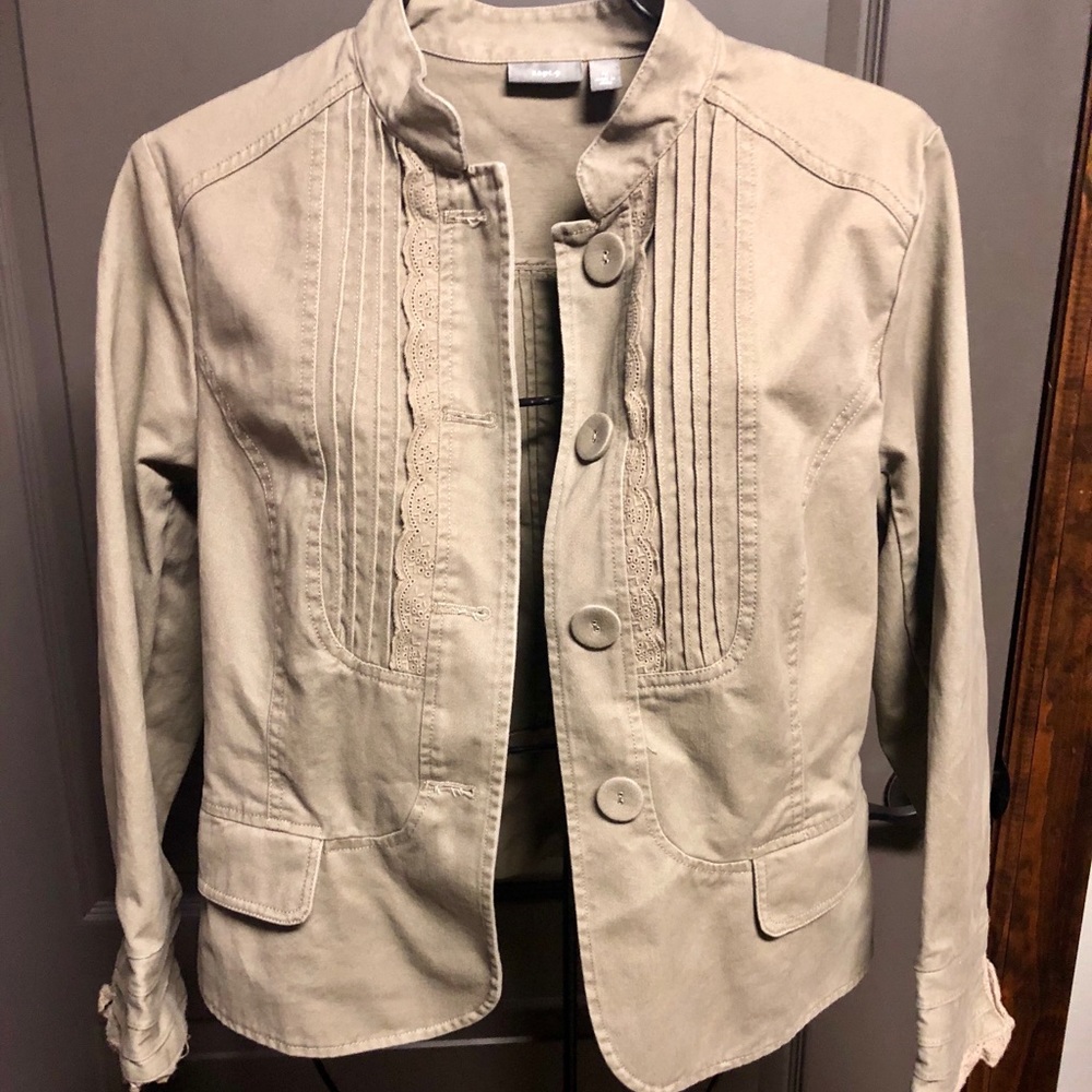 Apt 9 sage green crop button up jacket with lace detail