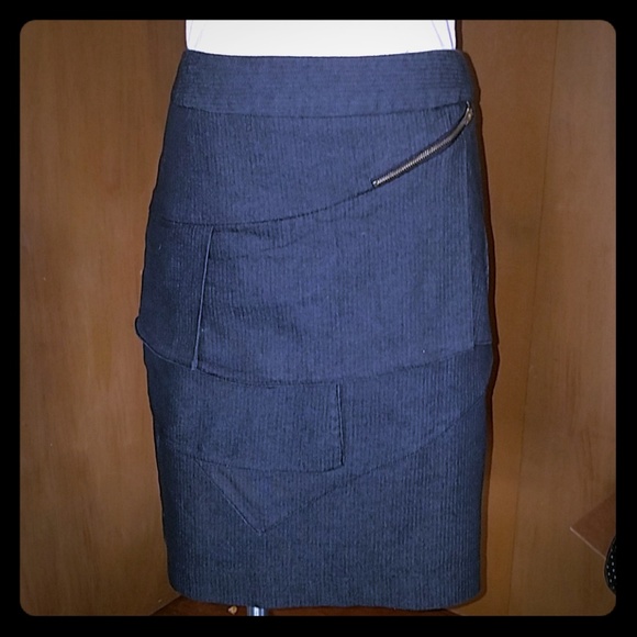 Gray herringbone striped pencil skirt.