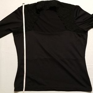 Very stretchy black top with lace detail. Excellent preowned condition. Really sexy and unique!