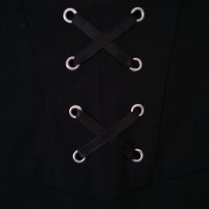 Laced up grommet waist on back center waistband. See photo for detail.