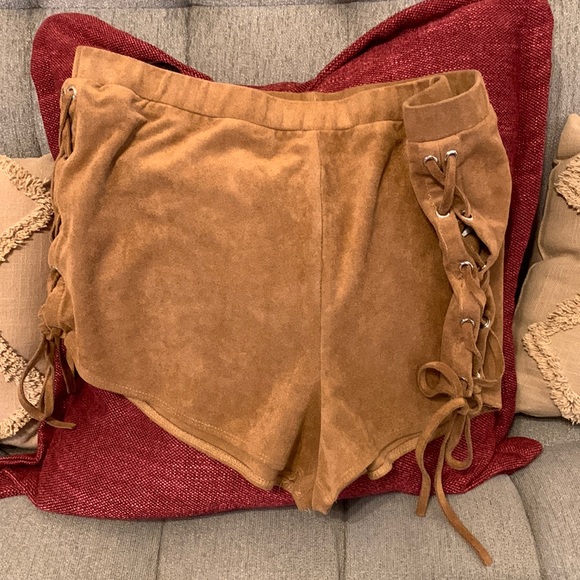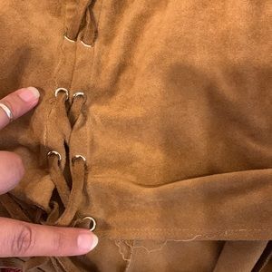 Have a leather look to them 🚨NOT LEATHER🚨 some of the thread came loose. Feel free to ask questions.