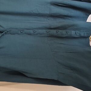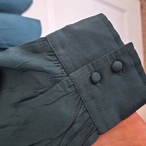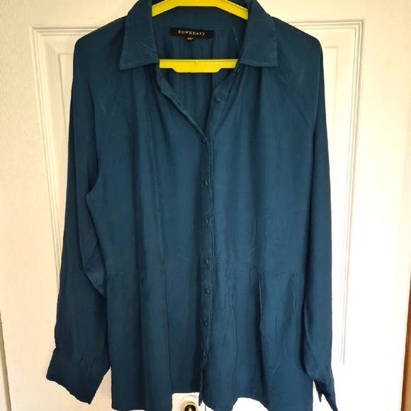 Elegant teal button-up blouse by DOWNEAST. Perfect for any occasion.