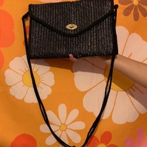 Lovely medium sized crossbody with removable black rope to become an oversized clutch.