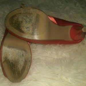 Comfortable and beautiful red JustFab heels. Fresh corset design, and just enough peep toe. Snatch these up today for your summer outfits. Goes great with dresses, jeans and shorts!