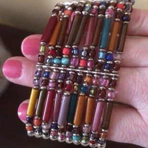 Stretch to fit multicolored bracelet! Great piece that goes with many different outfits!