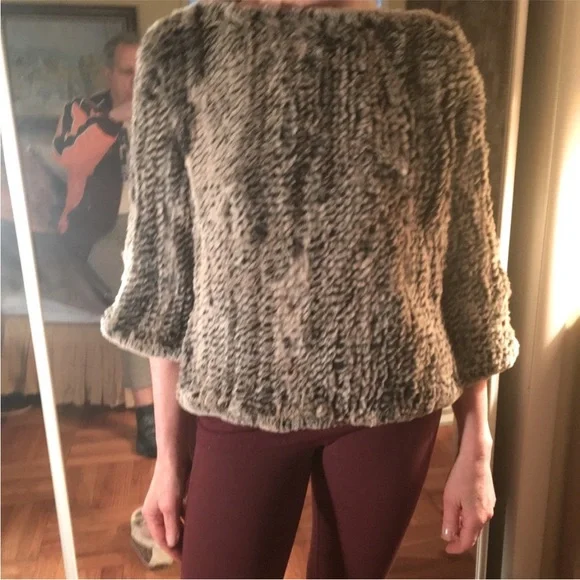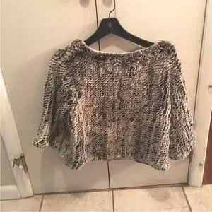 Authentic rabbit fur pullover cropped sweater. Arm length from neck 15.5 in.