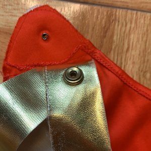 - Cape buttons have come off on the underside, use safety pins or garment tape to attach cape to shoulders.