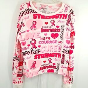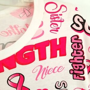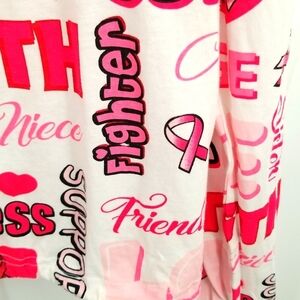 100% Cotton. Drawstring Waist. Uplifting, Beautiful, Supportive Thoughts Toward Courageous Breast Cancer Survivors. SHEroes & HEroes! Marked As 2X but fits more like Comfy Size Large.