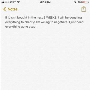 Willing to go down on some prices or even trade. I just need everything gone soon