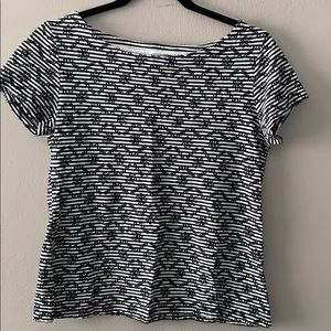 Slightly cropped with a cap sleeve and boat neck. Perfect with jeans or layering!