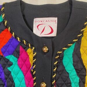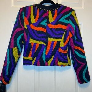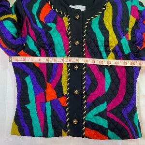 Doncaster 80s Quilted Vibrant Bold Artistic Print Blazer Sz 8 Vintage Boxy Style