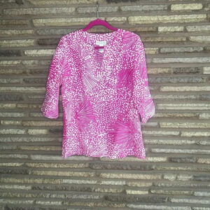 Doncaster Bright Pink and White Patterned Silk Linen Cotton Tunic Shirt Size 6