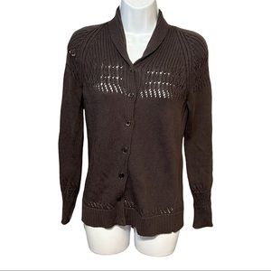 Doncaster Button Front Cardigan Smoke Gray Cotton Blend Open Knit Sweater XS