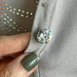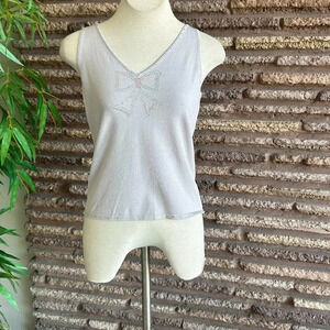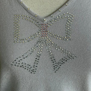 V-neck tank with rhinestone bling bow in the front coordinating cardigan sweater.