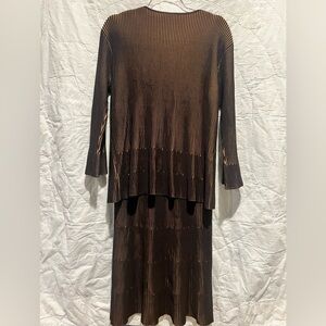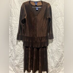 The Doncaster Collection Sleeveless Pleated Brown V Neck Dress and Brown Zip up Cardigan are in MINT Condition.