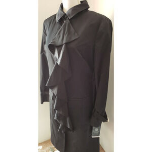 Doncaster Collection Womens Black Ruffle Front Tie Waist Trench Coat Jacket 16