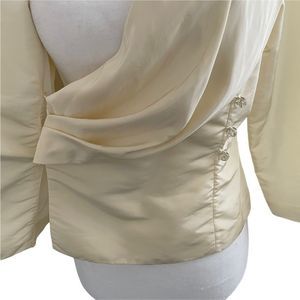 Doncaster Cream Formal Cocktail Wrap Blouse Top Crystal Buttons