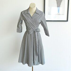 Doncaster Gray White Striped Full Skirt True Classic Wrap Dress