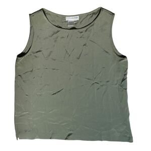 Doncaster Pale Sage Green 100% Silk Sleeveless Pullover Tank Top Size 10 Excellent Quality Scoop neck, classic silhouette. Small side slit at hem. Such a soft, luxurious feel to the silk and the color is so lovely- a muted kind of sage green with some gray in it- it will go with so many other colors!