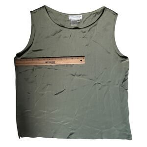 Doncaster Pale Sage Green 100% Silk Sleeveless Pullover Tank Top Size 10 Excellent Quality Scoop neck, classic silhouette. Small side slit at hem. Such a soft, luxurious feel to the silk and the color is so lovely- a muted kind of sage green with some gray in it- it will go with so many other colors!