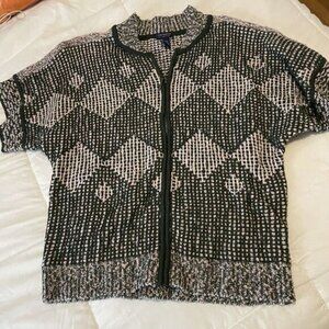Doncaster Green Shortsleeved Wool Sweater Zip up Cardigan Large Knit Winter Fall