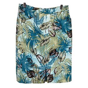 Doncaster Pencil Skirt Size 4 100% Silk Floral Pattern Pockets Blue & Brown Line