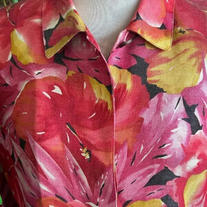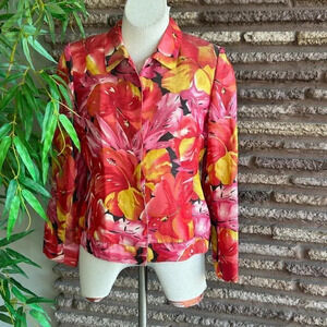 Doncaster Pink Colorful Floral Silk Linen Blazer Trucker Jacket