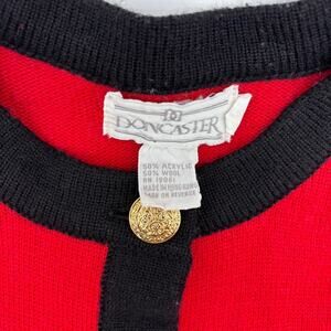 Doncaster Red Black & Gold Wool Blend Cardigan Small Plaid Accents Gold Buttons