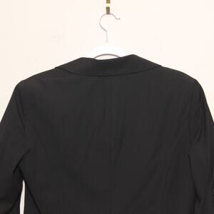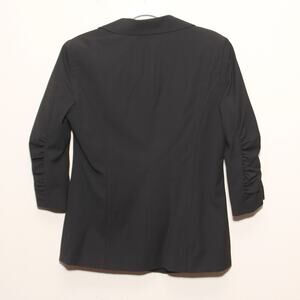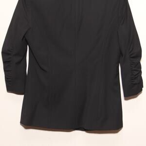 Notched lapel jacket with crinkle fabric accent on one side. 3/4 ruched sleeves. One button.
