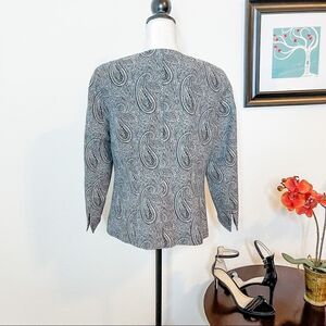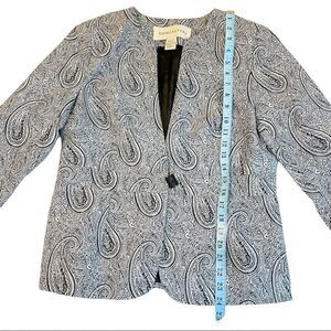 Gorgeous single button, black & white paisley design blazer jacket by Doncaster. Fully lined. Excellent pre-owned condition!