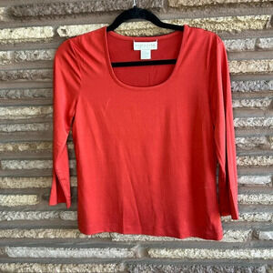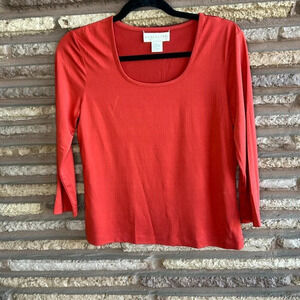 Doncaster Soft Burnt Red Scoop Neck Silk Blend Lightweight Sweater Size Small