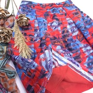 Elevate your wardrobe with this vibrant abstract print skirt. Featuring a stunning mix of red, blue, and purple hues, this skirt is perfect for making a bold statement. Ideal for any occasion, pair it with your favorite top for a chic look.
