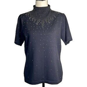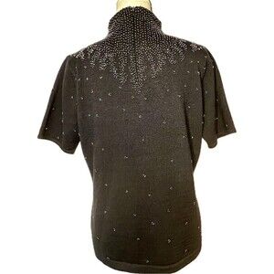 Doncaster Vintage Beaded Mock Neck Wool Top With Back Zip Closure Size Medium