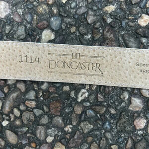 Doncaster White Leather Fashion Belt Gold Tone Hardware With Dangle