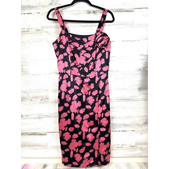 Doncaster Womens 8 Black Pink Floral Silk Sleeveless Work Party Midi Dress NWT