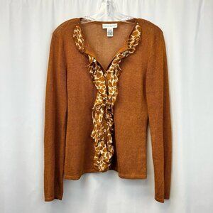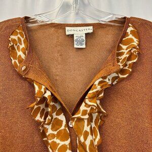 Doncaster Womens Button Up Cardigan Sweater Multicolor Giraffe Long Sleeve M