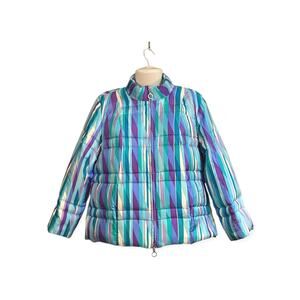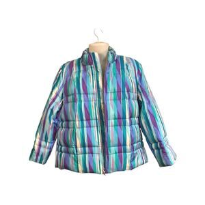 Doncaster Women's Multicolor 100% Silk Puffer Full Zip Jacket VINTAGE | Size XL