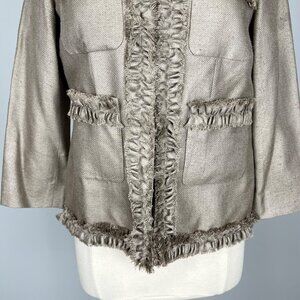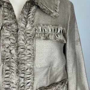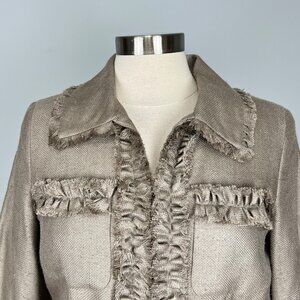 Doncaster Womens Silk Taupe Beige Blazer Jacket Ruffle Trim Hook Front size 6