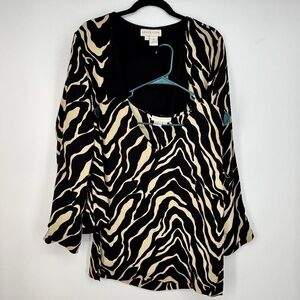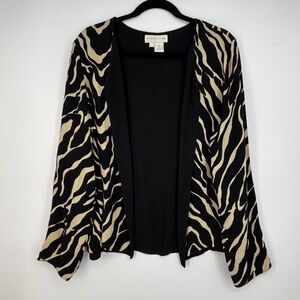 Doncaster Womens Size 12 Reversible Cardigan and Tank Set Black Tan 100% Silk LS
