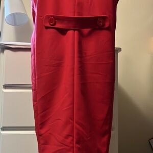 Brand new with tags red dress by Doncaster. This is a very expensive brand and I got my hands on several pieces so I’m selling this crazy cheap. It’s a size 4 but definitely runs large I’m gonna say more of a six or an eight, see photos for measurements. Unlined, fabric is quite thick so does not require lining or any additional under garments like slips.