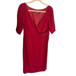 Doncaster crimson red woven 1/4 sleeve low neck midi dress lined size 8 NWT